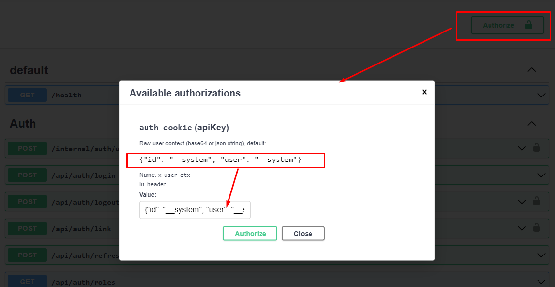 Call internal API as SYSTEM (API begin with /internal/ prefix)