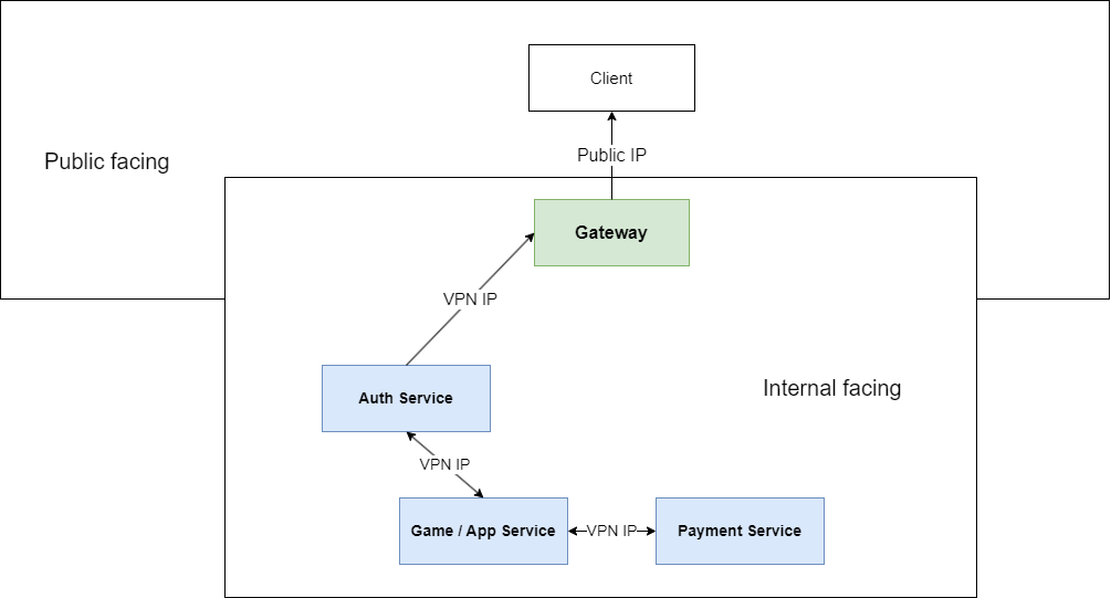 There are 2 difference API scopes in the system, one for external facing (frontend, public facing), one for internal facing (service-2-services communication)